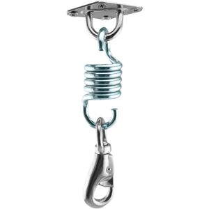 Corrosion resistance, high safety, comfortable spring performance The spring helps relieve stress from impacts, provide a more comfortable, softer feel and increase the lifespan of your hammock, in addition to your mounting Perfect for Hammock Chairs, Porch Swings, Swinging Chairs, Punching Bags, or hanging any other heavy object from an overhead mount Name: Self-tapping screw hanging chair accessories Scope of application: General Series: Hanging chair accessories size:10*10*3cm Material:metal colour:Silver Package Contents: 1 * diamond buckle 1 * hook 1 * high strength spring 4 * countersunk head self-tapping screwdriver Only the above package content, other products are not included. Note: Light reflection and different displays may cause the color of the item in the picture a little different from the real thing. The measurement allowed error is +/- 1-3cm.