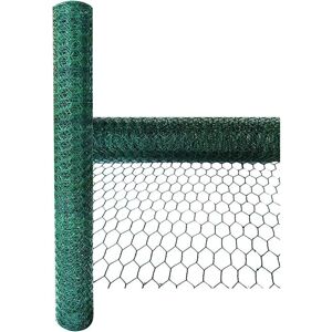 This strong, durable & long lasting traditional �chicken wire� fencing has a wide range of uses. It is manufactured from strong, galvanised, PVC coated hexagonal wire, making it a great product for all round protective use. This green PVC Coated Galvanised Wire Netting is strong, durable and very useful. Although it can perhaps best be used as chicken wire fencing, you could also use it for preventing wild animals from encroaching on your property, protecting saplings, or for marking off any �no go� zones. The wire netting is ideal for fencing, plant protection and support, dog and child proofing gardens, chicken runs, and animal enclosures, amongst others. The net measures 10m length by 0.9m height by 25mm diameter hexagonal hole. - PVC coated hexagonal wire. - Approx Item Weight: 2700g - Dimensions: L5m x H0.6m x 2.5mm thick - Mesh Holes: 22 x 12mm - Strong, durable, long lasting
