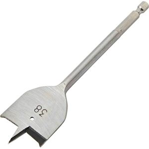 This hex shank flat wood drill bit has a precision double ground tri-point for fast waste removal and enhanced cutting performance. Made from hardened and tempered carbon steel. Suitable for drilling holes in softwood, medium hardwood, particle board, plasterboard and plastics. The hex shank prevents the bit from slipping from the chuck, enabling a quick change. Compatible with standard drill drivers and drills with a 10/13mm standard chuck. Features and Benefits • Precision double ground tri-point for fast waste removal and enhanced cutting performance • Made from hardened and tempered carbon steel • Suitable for drilling holes in softwood, medium hardwood, particle board, plasterboard and plastics • Hex shank for a quick change • Compatible with standard drill drivers and drills with a 10/13mm standard chuck Specifications Diameter: 38mm Length: 152mm Shank type: Hex shank Shank size: 6.35mm Type: Double ground Point style: Tri-point Weight: 55g