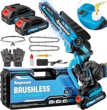 FEATURES ?? Equipped with dual chains, extending the service life of the chain saw. Chain speed: 5300 rpm. ?? Our handheld electric chain saw comes with a plastic box for easy carrying, work, and storage. ?? The pure copper motor is more durable, it increases power efficiency and reduces power consumption. ?? The powerful brushless motor does not generate sparks inside the motor during operation, making it very quiet and running very smoothly. ? The safety lock prevents accidental contact and protects your safety during use. Effective ventilation and heat dissipation are designed to facilitate heat dissipation. SPECIFICATION Motor: Brushless Motor Number of Chains: 2 Speed: 2200 rpm Power: 600W Guide Plate Length: 6 inches Cutting Diameter: 0-80 mm Machine Net Weight: 1.15 kg/2.53 lbs Net Weight of Battery: 0.35 kg/0.77 lbs Product Size: 40.5×11.5×7.5 cm / 16×4.5×3 " Package Size: 41×20×15 cm / 16×7.9×6 " NOTE Read This Instruction Manual Carefully Before Using The Chainsaw. Please