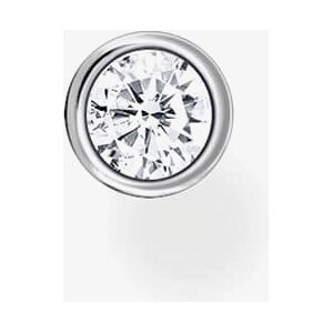 This 925 Sterling silver single hoop earring includes an eyelet for attaching a charm, and the snap hook is elegantly concealed by a pendant adorned with white zirconia stones, keeping the charm in focus. Diameter: 15mm Item Code: CR720-051-21