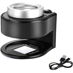 Note:This product UV lamp is 395nm Specifications: Material: metal Product multiplying rate: 60X standard Lighting source:Three LED lights, three UV lights Battery model:USB charging Product size: 50X53X60mm Color: Black Usage method: Observation method 1: Let the magnifier close to the object to be observed, and keep the distance between the human eye and the object to be observed unchanged. Then move the hand-held magnifier back and forth between the object and the human eye until the image is large and clear. Observation method 2: magnifying glass as close as possible to the eyes. The magnifying glass does not move, moving objects until the image is large and clear. Package Contents: 1pcs 60X double layer Optical Magnifying Glass 1pcs USB cable Only the above package content, other products are not included. Note: Light reflection and different displays may cause the color of the item in the picture a little different from the real thing. The measurement allowed error is +/- 1-3cm.