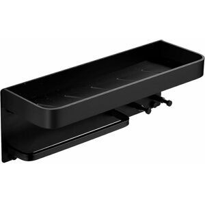 【High Quality Material】The shower shelf is made of 6063 aluminum, more sturdy and durable. 【Modern Appearance】Matte black surface is dirt and scratch resistant. Ideal for bathrooms and kitchens. 【Convenient Storage Space】 You can store shower utensils on the shower shelf, e.g. Shampoo, shower gel, conditioner. You can hang a towel on the towel rack. There are also two hooks on which you can hang something. 【Waterproof and Rustproof】 Aluminum has effective rust protection. With drain openings, no water can accumulate and stay dry. 【Two Installation Methods】 Glue or drill, install with strong glue to prevent damage to walls.< /p>