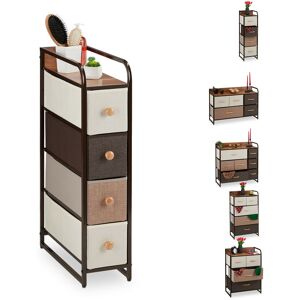 Dresser, 4 Drawer Compartments, with Shelf, 4 Folding Baskets, Fabric, Steel Frame, 84.5x20x49.5 cm, Brown - Relaxdays