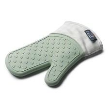 Superb traditional oven glove with added protection. The Zeal silicone single oven glove not only protects your hands from hot surfaces such as pans and trays, but the waterproof, heatproof silicone also helps protect from steam and boiling water too. The inner padding makes it comfortable to wear for all hand sizes, whilst the non-slip silicone provides great grip on wet, hot or awkward to handle items. Use to move roast meats or poultry direct for the oven tray to the carving board, then simply rinse under the hot tap to clean genius! Features a bold typographic patterned fabric. Zeal Steam Stop Waterproof Silicone Double Oven Gloves in Lime