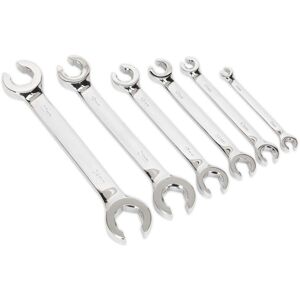 Sealey Siegen Flare Nut Spanner Set 6pc Features: Drop-forged steel spanners with contoured shafts. Fully hardened, tempered and chrome plated for resistance to corrosion. Flare type jaw suitable for most common sizes of compression joint fittings. Six double end spanners cover 12 sizes. Supplied in storage/hanging pouch. Technical Details: • Drop-forged steel spanners with contoured shafts. • Fully hardened, tempered and chrome plated for resistance to corrosion. • Flare type jaw suitable for most common sizes of compression joint. • Sizes: 6 x 8, 10 x 12, 13 x 14, 15 x 17, 19 x 21, 22 x 24mm. • Supplied in storage/hanging pouch. • Lifetime guarantee*. • Model No. S0767 • Model No. S0767 Additional Information: • Part of the Siegen by Sealey range of quality tools at competitive prices. • Drop-forged steel spanners with contoured shafts. • Fully hardened, tempered and chrome plated for resistance to corrosion. • Flare type jaw suitable for most common sizes of compression joint
