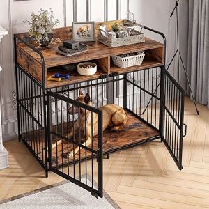 dog crate large dog crate dog crate furniture dog crate large xl dog crate Large Dog Crate Furniture with Drawer Storage Large Indoor Wood Dog Kennel Heavy Duty Metal Dog Cage Table 103×60×80CM - Rustic Brown Description 【Multi-functional Design】The Large Dog Crate Furniture serves as both a stylish dog crate and a functional furniture piece. Its large countertop can be used for decorative purposes or as a convenient surface for preparing dog food. 【Ample Storage Space】With two spacious drawers located beneath the countertop, this dog crate offers ample storage space for storing dog food, snacks, toys, and other pet essentials. 【High-Quality Materials】Constructed with high-quality steel and particleboard, this dog kennel is not only waterproof and easy to clean but also highly durable and resistant to chewing. 【Flexible and Safe】The double opening front door and single opening side door provide flexibility in adapting to different furniture layouts. The guardrail design of the