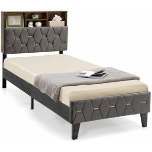 Enhance your bedroom with the industrial twin bed frame, making a bold statement. The high headboard provides both support and an industrial aesthetic. Experience a peaceful sleep with the silent scientific mute bars. The embedded footboard prevents mattress slippage and adds stability. This rustproof metal bed frame can support up to 220kg with its 9 support legs, ensuring even pressure distribution. 36cm elevated off the floor, the platform bed offers roomy space to store sundry boxes. Installation is stress-free with clear instructions and no need for a box spring. Find the perfect fit with a recommended mattress thickness of 10-20cm. Sleep in both comfort and style with our exceptional twin size bed frame. Costway Single Size Bed Frame Heavy-duty Industrial Metal Platform Bed w/High Headboard in Brown