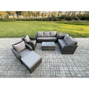 This 8 seater outdoor rattan sofa set is a great addition to patio or garden, made of high quality PE rattan and durable galvanized steel construction for sturdiness and long lasting.Durability ,and can be put outdoor all year round. Perfect set to sit round with your family and friends. Set Dimensions: • 2 x Side coffee table :65L x 65W x 66H cm • 1 x Big footstool :65L x 65W x 34H cm • 2 x Reclining Chairs: 74L x 67W x 79H cm • 1 x Love Sofa Size: 124W x 67D x 79H cm • 1 x 3 seater Sofa Size: 177W x 67D x 79H cm • 1 x Oblong Coffee Table :85L x 50W x 37H cm Dark grey mixed rattan with dark grey fabric .Color may some difference due to light or monitor .we are unable to return the item due to color problem . The armchair are adjustable, you can adjust the inclination of the chair back from 90°-130° through the button . Items Comes Flat Packed And Easy Assemble,Sturdy Galvanized Steel Tube Metal Frames With Powder Coating To Prevent The Rust Flat PE Rattan Completely Made By Hand, 5mm