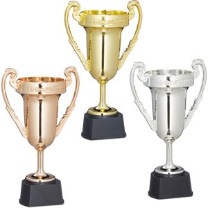 Grab the golden trophy and put the others in their place. This beautifully designed trophy set will bring out the competitive spirit in your party guests. The 30 trophies in gold, silver and bronze for 1st to 3rd place are made of plastic. The black base can be personalised with a white permanent marker. Whether for school competitions or children's birthday parties at home, these trophies will ensure lots of fun and a healthy sporting spirit. Trophy Set Details - Trophy dimensions H x W x D: each approx. 22.5 x 13.5 x 8.5 cm - Weight: approx. 100 g each - Material: Plastic - Colour: Gold, silver, bronze Award Cups for Children - Set of 30 decorated cups in gold, silver and bronze - Customisable base suitable for any occasion - Award for birthdays, fancy dress parties, sports events and much more - Versatile sports trophy for football, darts, bowling and more - Ideal gift for children's birthday parties when filled with sweets - Also makes a great travelling trophy for games nights