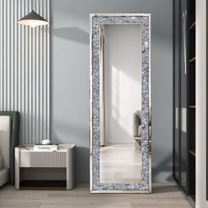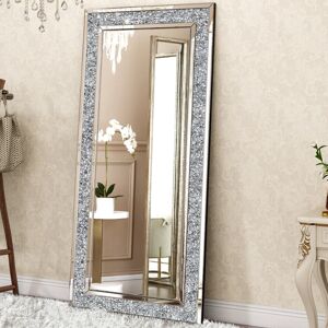 This glass full-length mirror with a stand is clean and eye-catching in any space. With sparkling crushed diamonds, the large floor mirror is perfect for leaning against the wall in your bedroom or guest room and letting the natural sunlight bounce around your space, making your room look bigger. The full-body mirror can also be used as a decorative highlight in your home, with its crushed diamond glass frame and high-definition mirror providing both utility and decoration. Its solid MDF weight and wood stand provide stability and safety usage. Blue Elephant