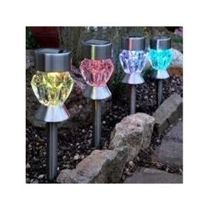 Set of 4 Solar LED Cool White lights � Add a startling night-time landscaping effect to your lawn & garden with these Diamond Shaped Cool White LED Solar Lights. Built-in solar panel automatically recharges during day and automatically turns on lights during night so you never have to worry about huge electric bills this holiday season for garden lighting! With removable head that can be used as table lamp, step lights, balcony lights or any other decorations as per your creativity! Long-lasting 100,000 hours of LED life and tightly sealed for perfect waterproof insulation so that it will stay as your solar garden ornaments for the years to come! These Solar Powered Lights measure 25cm (h) x 7cm (w) (height is measured without ground stake).