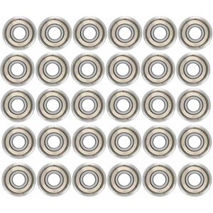 Material: Carbon steel, durable and resistant to deformation under heavy loads. Package includes: 30 pieces of 608zz bearings. (8 mm x 22 mm x 7 mm). Protective covers on both sides retain lubricant and remove contaminants. Ball bearing performance characteristics: low noise. High speed. High temperature resistance. High load capacity. Suitable for skateboards, inline skates, scooters, and other skating applications. Specifications: Outer diameter: 22 mm Inner diameter: 8 mm Thickness: 7 mm