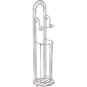 Distressed Vintage Style Toilet Paper Stand. A metal toilet paper stand, that is not only a functional accessory, but also a decorative accent for the bathroom. Its ornate metal frame showcases a white colour in weathered effect to emphasize the vintage style. The stand has a practical paper holder and a tray for additional rolls. Details: Product Type: Toilet Paper Holder Style: Retro General Color: White Material Type: Metal Main Material: Iron Finish: Powder Coated Dimensions: Depth: 20 cm Width: 20 cm Height: 75 cm Weight: 1 kg Offer Includes: 1 x Toilet Paper Holder Key Features: Decorative Yet Functional, Retro Style, High-Quality Materials, Exceptionally Easy Care, Lightweight and Easy to Move Assembly Information: Does Not Require Assembly Additional Information: Distressed effect, weathered look or staining of this product is intentional. Please remember that it is not considered an item defect. Maintenance tips: Iron: 1.Clean with a mild cleaner and soft cloth, wipe dry