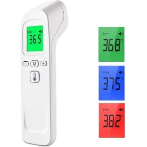 Easy-to-use non-contact thermometer with remarkable accuracy and reliability thanks to its sensitive infrared sensors with an accuracy of ±0.2℃ (±0.4℉). allows you to take the temperatures of all the members of your family in one second, whether adults, children or babies, without the slightest constraint, and this while respecting the hygienic rules unlike conventional thermometers Two modes for taking the temperature of the human body (adult, child, or baby) and objects, and the temperature is taken without contact at a distance of 1 to 5 cm for reliable measurements. large LCD screen for better reading with three color indicators green for a normal temperature, yellow for the onset of fever and red for a high fever, you can choose the unit of measurement by℃ (Celsius) or in℉(Fahrenheit), and choose sound alert for fever or mute mode. , and to save energy, the thermometer stops automatically after a period of inactivity. stores up to 30 measurements to follow the evolution of the