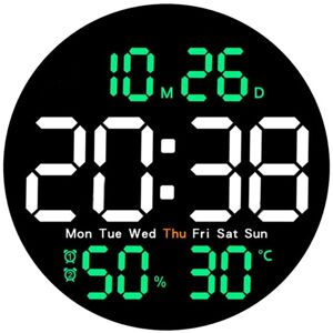 Multifunctional wall clock with temperature, humidity, time, date, week display 10 inch LED large wall clock 24 or 12 hour alarm display Modern design wall clock with automatic light-sensing and manual brightness adjustment. LED multi-function mirror light with positive timing and countdown timing functions Remote control This silent core clock not disturb you while you are working, studying or sleeping. Suitable for bedroom, living room, study, office, etc. This wall clock needs to be plugged in and used with a USB cable or it doesn't work. Plus the battery have a memory function, even if a sudden power failure is not afraid of the time reset. Name: LED Simple Alarm Clock Power supply: USB plug in+3xAAA batteries(memory function) Due To Different Batches, The Actual Product May Have Slight Differences Or Color Differences, Which Does Not Affect Use Colour:black+Orange Material:ABS Package Contents: 1 x Clock(not included batteries) 1 x USB cable 1 x Remote controls Only the above