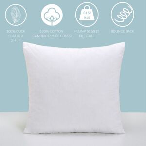 Enhance the decor of you living room, bedroom, study and room with these 100% duck feather cushion inners. The generously filled cushions are designed with comfort and durability in mind. Perfect for padding out your new empty cushion covers, or simply replacing the old cushion inners from your favourite cushions. The measurements of the cushion inners are taken when the cushion is FLAT. Due to the deep fill of the cushion, it is recommended that you buy a cushion inner a couple cm larger than the cushion cover it is intended for to give that plump and luxurious look. Cushions are measured along each side NOT diagonally. 100% cotton cambric proof cover. 100% duck feather 2-4cm filling. Once unpackaged the cushion will need to be plumped to desired shape. 56x56cm (22x22 inches) - 915g fill rate