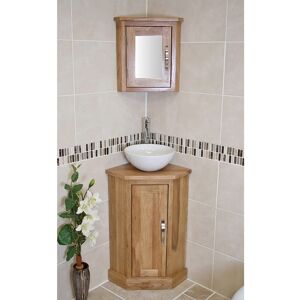 This is an stunning handcrafted solid oak bathroom freestanding corner vanity unit with a single cupboard with a height-adjustable central shelf. This unit comes complete with an undrilled worktop, a matching solid oak mirrored top cabinet, a basin, a chromed mixer tap with braided connectors, and a chromed pop-up plug. Belfry Bathroom Base Finish: White