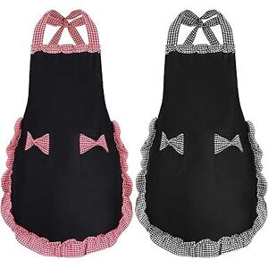 【Premium Material】: The women's cooking aprons are made of waterproof cotton and polyester, 3 thickened linings make it more durable and safe, easy to clean. 【2 Large Pockets】: The women's cooking aprons designed with 2 larger pockets provide you with space. 【Excellent Coverage】: The women's chef aprons front and back have waterproof coating, they have excellent coverage and prevent kitchen grease, spills and food stains. 【Perfect Gift】: The cute apron set is a sweet gift for wife, girlfriend, grandma, sisters, daughter, they would be surprised to receive this gift for Birthday, Mother's Day, Valentine's Day, Christmas.