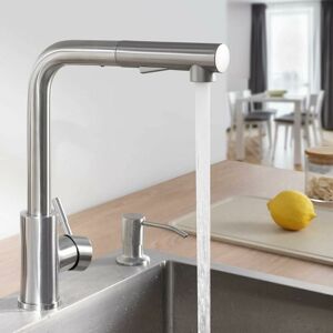 Kitchen faucet with 2-jet shower Kitchen faucet with pull-out shower 360° rotating sink faucet Kitchen mixer tap Cold and hot water ♥PRODUCT ADVANTAGE: → HIGH QUALITY IN THE KITCHEN: The C-shaped bent pipe is made of stainless steel and the body of the kitchen faucet is made of zinc alloy. We also use brass to make the pull-out spout to extend its life and reduce frequent replacement. → MORE FLEXIBLE: This pull-out kitchen faucet can be pulled out up to 40cm, with a 360° swivel range giving you maximum radius of movement, cleaning pots and far corners of the sink will no longer be a big problem. → 2 TYPES OF JETS: You can switch between two types of jets directly on the spout at the touch of a button. The soft shower jet is ideal for gently rinsing fruits and vegetables. → AN INNOVATION THAT SAVES: The water saving function controls the water flow with a two-stage lever movement and thus saves up to 30% water. → EASY INSTALLATION: The elbow tube of the kitchen faucet can be assembled,