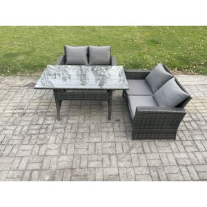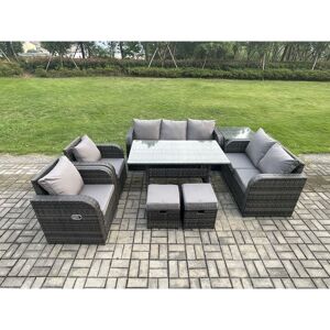 This deluxe 8 Seater reclining rattan sofa set is a great addition to patio or garden, made of high quality PE rattan and durable galvanized steel construction for sturdiness and long lasting.Durability ,and can be put outdoor all year round. Perfect set to sit round with your family and friends. • Set Dimensions: • 2 x Side coffee table :65L x 65W x 66H cm • 1 x Big footstool :65L x 65W x 34H cm • 2 x Reclining Chairs: 74L x 67W x 79H cm • 1 x Lovesofa :124W x69Dx79H cm • 1 x 3 seater Sofa Size: 177W x 67D x 79H cm • 1 x Dining Table :140L x 80W x 69H cm • Dark grey mixed rattan with dark grey fabric .Color may some difference due to light or monitor .we are unable to return the item due to color problem . The 2 armchairs are adjustable, you can adjust the inclination of the chair back from 90°-130° through the button . • Items Comes Flat Packed And Easy Assemble,Sturdy Galvanized Steel Tube Metal Frames With Powder Coating To Prevent The Rust, Ergonomic High Back And Declining