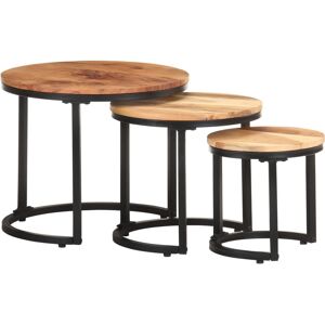Bring a touch of industrial charm into your home decor with these wooden side tables! This set of tables is made of solid acacia wood, making it sturdy. The exquisite craftsmanship and beautiful wood grains make every piece slightly different from the next. Additionally, the solid tabletop provides a stable and secure surface on which you can place your various essentials. The powder-coated iron base adds to the table's sturdiness and stability. What's more, you can stagger or separate the tables to meet your multiple needs, and nest them together to save space when not in use. Important note: The colours and wood grain may vary from piece to piece, making each piece unique. The delivery is random, ensuring the exclusivity and individuality of your product. Borough Wharf