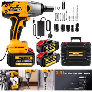 Dayplus - Cordless Impact Wrench 3/8' Drive Ratchet Gun 2 Battery & 7Pcs Sockets Set 120NM