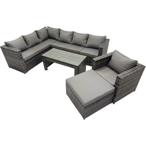 Luxury PE Rattan Sofa Set - Premium Outdoor Furniture for Patio & Garden Transform your outdoor space into a stylish oasis with this deluxe PE rattan sofa set expertly crafted for durability, comfort, and timeless elegance. Perfect for hosting guests or unwinding under the sun! Premium Quality Construction All-Weather PE Rattan: UV-resistant, non-fading woven wicker withstands sun, rain, and temperature changes. Rust-Proof Galvanized Steel Frame: Powder-coated for enhanced corrosion resistance and long-term stability. Industrial-Grade Weight Capacity: Sofas support up to 250kg, tables hold 80kg built for reliability. Ergonomic Comfort Features 2 Adjustable Reclining Armchairs: Customize your relaxation with 90-130 backrest angles (easy-button adjustment). Ultra-Plush Cushions: 8cm thick seat cushions + soft backrests with removable, machine-washable covers (dark grey premium fabric). 5mm Tempered Glass Tabletop: Anti-slip suction pads ensure safety; scratch-resistant surface. Set dimensions: 1 x Recliner: 74W x 69D x 79H cm 2 x 3 Seater Sofa Size: 177W x 67D x 79H cm 1 x Oversized Footstool: 65L x 65W x 34H cm 1 x Dining Table: 110L x 70W x 70H cm Hassle-Free Assembly & Maintenance Flat-Pack Delivery: Easy-to-follow instructions with numbered parts. Low Maintenance: Wipe rattan with damp cloth; store cushions indoors or use included rain covers during off-seasons. Modular Design: Rearrange components effortlessly to suit your space. Important Notes Color: Light grey rattan + dark grey fabric (minor monitor color variations possible contact us for fabric samples). Delivery: Curbside drop-off only; inspect packages before signing. Report damages immediately for free replacements. Weather Protection: Use provided rain covers for long-term outdoor storage.