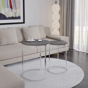 The Shalyssa 2-Piece Round Nesting Tables Set is a stunning addition to any modern living space. This versatile set offers a multitude of style options to perfectly complement your decor. The sleek steel legs come in three elegant finishes: gold, chrome, or black, allowing you to choose the perfect accent for your room. The tabletops, crafted from high-quality wood, are. This diverse selection ensures that you can find the ideal combination to match your personal taste and existing furnishings. Whether you're looking to create a minimalist aesthetic or a bold statement, this nesting table set is the perfect solution. The larger table, measuring H60.2 x D49.5 cm, provides ample space for displaying decorative items, books, or a cozy cup of tea. The smaller table, measuring H55.2 x D37.5 cm, is ideal for holding a lamp, a potted plant, or other small essentials. This practical and stylish set can be easily nested together to save space when not in use, making it a perfect choice for smaller apartments or rooms with limited floor space. 17 Stories Table Base Colour: Chrome, Table Top Colour: White Ash
