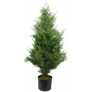 Fabulous natural looking artificial tree. Our artificial cedar trees have ultra realistic foliage- real wood trunks and they are certainly easy to mistake for the real thing. These look fantastic when placed inside a large tub or planter and are suitable for use both indoors and outdoors. Measures 90cm (3ft) from base to tip and 45cm wide. Natural bushy look. These artificial cedar trees are available in a range of sizes. This tree can be used indoors or outdoors in a sheltered spot. We recommend protecting from extremes of temperature to extend life. Stems are wired so this can be arranged to fit your space perfectly. It is highly realistic with botanically accurate foliage. Our fake cedar trees look very realistic even down to the slightly lighter green tips of the leaves. It comes potted in a plain plastic pot and is ready to display. You can easily put this inside a larger planter if you wish. Plastic pot measures 15cm x 12cm so can be potted inside any planter larger than this.
