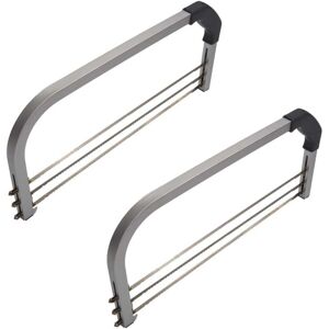 Professional interlayer cake slicer Cuts cakes into several layers The 3 cutting wires are height adjustable Measuring guide mark on each side Color: As shown Comfort grip Minimum cutting height is 10mm, Maximum cutting height is 110mm Blade size: 44cm X 0.7cm Total dimensions: 53 X 23cm X 2.8cm Material: Stainless steel + ABS Package includes: 2 x Cake cutter leveler Only the above package content, other products are not included. Note: Light shooting and different displays may cause the color of the item in the picture a little different from the real thing. The measurement allowed error is +/- 1-3 cm.