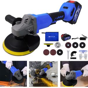 Lithium-ion Rechargeable Angle Grinder, Brushless Electric Polisher, Multifunctional Grinder, Cutting Machine, Angle Grinder, Electromechanical Grinder. Package Contents: Brushless Angle grind*1 21V charger*1 3000MAH BATTERY *1 125 grinding wheel cover *1 Handle*1 115 adjustment wrench*1 115 pressure plate*1 4.5-inch woodworking blade *1 115 polishing disc*1 115 sandpaper *2 115 cutting wheel blade *2 115 louver wheel*1 115 grinding wheel grinding disc*1 Non-slip gloves*1 Goggles*1 Cloth bag *1 Instruction manual*1 About this item: Rotational speed: 10000 rpm Motor: brushless motor Selling points: brushless motor, one-handed operation, fast cutting, grinding and polishing, multi-purpose machine, small and lightweight Working time when the battery is fully charged: 25MIN Charging time: 2.5h Power type: rechargeable - lithium battery technology Whether to regulate speed: with three speed regulation GRINDING WHEEL APERTURE: 22MM THE MAXIMUM DIAMETER OF THE GRINDING WHEEL BLADE: 115MM