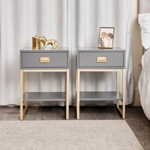 Introducing our Pair of One Drawer Bedside Tables from the Elle Stone Range. A sleek and stylish storage addition to any bedroom, hallway, or living room. The gold frame and handles provide an elegant and luxurious contrast to the stone pale taupe finish. Paired with its contemporary design, this pair of bedsides could blend into a variety of interior styles. Made of coated mdf and metal, these bedside tables are well made and visually appealing. The single drawer and bottom shelf on each bedside table will give you all the storage space you need for books, trinkets or other decor items. This item is also available in a slate grey colour. Matching items are available in this collection. Please Note: This item requires assembly. It will take approximately 30-60 minutes to assemble each bedside. Each bedside weighs 12.2kg. Canora Grey Colour (Top): Cream
