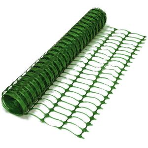 1 x Heavy Duty Green Safety Barrier Mesh Fencing 1mtr x 50mtr One roll of heavy duty safety barrier fencing and just a few pins (sold separately) will give you a temporary fence erected in minutes. The safety barrier fence can be used for cordoning off areas on construction sites, railways and sporting events etc. Highly visible Durable Plastic Weatherproof Reusable Roll Dimensions 1m x 50m Hole Dimensions 100MM x 40MM Dimensions (L) 50m x (W) 1m Roll Weight 4kg