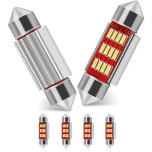 【Type】6 Pack, 39mm 4014 10-SMD, Only for DC 12V vehicles 【Color Temperature】Xenon white, 6000~7000K, Ultra Bright LED Bulb, 12V 180LM, 180 degree sight illumination 【Easy Installation】Direct Replacement,Faster on/off response time and vibration resistant 【Application】Perfect for car auto interior lights, LED dome lights bulbs ,Vanity Mirror Lights or Cargo Area Lights, Led license plate light , LED Map Lights Bulbs,Side Door Courtesy Lights Product description Festoon Led Bulb are using for Dome light, Map light, Trunk light, License plate light, Side marker, Backup light, Side Door Courtesy, Luggage Compartment Light, Cargo light, etc. Specifications: Length: 39mm Base Type: Festoon LED Base LED Color: Xenon White Operating Voltage: 12V Wattage: 1.2W Lumens: 180LM LED Lifespan: 50,000 hours Type: LED Replacement Bulb Features: Easy to install, Just plug and play, no wiring needed. Point to point welding, the light body structure and firm, not easy to damage. Energy efficient with new