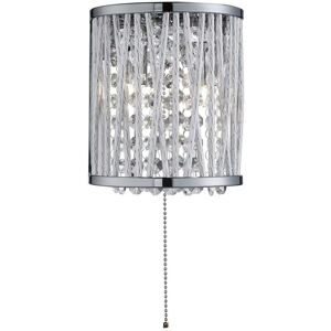 Specification Searchlight Elise - 2 Light Indoor Wall Light Chrome, Crystal, G9 Finish: Chrome Material: Aluminium IP Rating: IP20 Height (cm): 17 Width (cm): 17 Projection (cm): 11 No. of Lights: 2 Lamp Type: G9 Switched: Yes Wattage (max): 33 Weight (kg): 0.7 Class: 1 (Earthed) Description This is an impressive range which offers a large choice of different fittings. The fittings have textured chrome bars to create a further attraction. The crystal detail adds immensely to the design of this fitting, thereby providing a pleasant addition to the decor of the room as well as an effective light fitting. This wall light is complete with a pull-cord switch for your convenience.