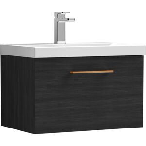 Balterley 600mm Wall Hung Bathroom 1 Drawer Vanity Unit and 1 Tap Hole Ceramic Basin, Woodgrain Anthracite with Black Handle Designed to bring style and practicality together, this unit creates a clean, modern focal point in your bathroom. Its wall-hung look enhances the feeling of space while keeping essentials neatly tucked away. Perfect for everyday living. Crafted from high-quality materials, this vanity unit is built to last with a durable finish that stands up to daily use. The soft-close drawer mechanism ensures smooth, quiet operation while protecting the unit from wear and tear. Precision manufacturing delivers a sleek design with reliable performance you can trust. Product Highlights: Woodgrain Finish: Stylish bathroom vanity unit with a durable woodgrain finish that brings natural warmth and texture to your bathroom décor. Wall Hung Design: Contemporary bathroom vanity unit with a space-saving wall-hung design that enhances floor space, creates a modern floating look, and