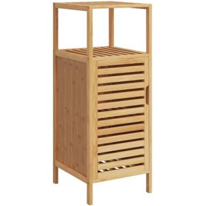 This classic bathroom cabinet is a perfect addition to your bathroom, giving it a tidy and striking appearance! Durable material: Bamboo is known for its flexibility and hardness. Bamboo furniture is a good option when you want sturdy furniture made from natural materials. In addition, the varnish treatment can prevent scratches on the storage cabinet and also waterproof the wood. Ample storage space: This bathroom furniture has compartments, 1 door and 1 shelf, providing you with ample storage space to keep your essentials well organised. Louvred door: Designed with a louvred door, this bathroom unit facilitates ventilation and keeps a bad smell from breeding while delivering a stylish piece for your home. Elevated legs: Elevated legs are working for avoiding water accumulation. unnecessary rotting of cabinet bottom and easy cleaning. Material: Bamboo with transparent varnish Dimensions: 36 x 33 x 87 cm (L x W x H) Top open shelf height: 22 cm Cabinet leg height: 9.5 cm Max. load