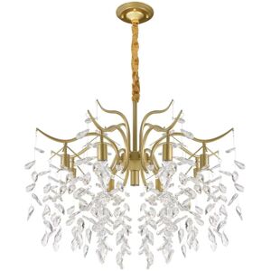 Description This chandelier can be combined with most decoration styles to create a romantic and warm atmosphere and a high-quality lifestyle. Premium materials and fine workmanship offer it longevity. It is a beautiful and practical furniture decoration that provides clean and tidy lighting for your living environment. Hurry up to bring it home! Key Features Made to Last: Mainly made of iron with a high-temperature baking paint process, this product is not easily corroded, worn, or deformed, ensuring your long-term use. Gorgeous Appearance: The golden tone, branched-shape, and beautiful hanging crystal pendants give this product a gorgeous appearance to embellish your home. Good Lighting: This product can be self-configured with nine E12 bulbs to provide great lighting (53.82-161.46 ft²), which fully illuminates your room. Thoughtful Companion: The light produced by this chandelier not only illuminates your living space but also drapes a layer of romanticism over ordinary daily life,