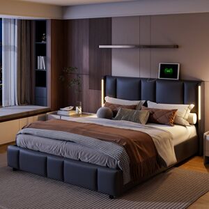 MODERN DESIGN WITH SMART LIGHTING: Crafted in sleek black faux leather, this bed frame brings a modern, stylish touch to any bedroom. The headboard features built-in LED light strips with adjustable brightness and color modes, all easily controlled via remote—perfect for setting the mood, day or night. DUAL CHARGING PORTS FOR MODERN LIVING: Equipped with both USB and Type-C charging ports on the headboard, this bed keeps your devices powered up and always within reach—no more messy cables or reaching across the room for a charger. SPACIOUS UNDER-BED STORAGE: Lift the mattress base effortlessly with the built-in hydraulic mechanism to reveal generous hidden storage space. Ideal for storing extra bedding, seasonal clothes, or anything else you'd like out of sight but close at hand. STURDY & COMFORTABLE CONSTRUCTION: Built with a durable metal frame and strong wooden slats, this bed provides excellent support and long-term stability. It’s designed to offer both style and strength in one compact structure. FUNCTION MEETS COMFORT: Combining modern convenience with luxurious comfort, this bed is the perfect blend of smart functionality and sleek aesthetics—ideal for those who want more from their bedroom furniture. Metro Lane Size: European Kingsize (160 x 200 cm)