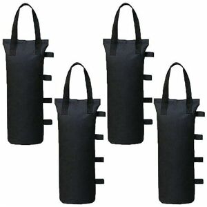 Features: 4 Pack Gazebo Sand Weights - Easily stabilize any pop-up tent or umbrella. With a set of durable and universal weight bags, your outdoor activities can become more fun and enjoyable. 600D Oxford Material: The gazebo weight bags are made of high-strength 600D Oxford fabric with PVC, which is waterproof, durable and can be used in all weathers. HEAVY-DUTY DESIGN - Boasting double stitching, each gazebo can hold up to 22 lbs of sand, gravel or soil, securely holding your pop-up tent and canopy in place. Easy to Use: Simply load the sand into the weight bag and secure it where you need it. After use, you can pour the sand directly. Notice - Does not include sand. The weight bag cannot hold water or other liquids directly. Awnings, pop-up awnings, commercial awnings, beach awnings, small awnings and even gazebos and more.