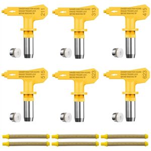 6 pieces airless sprayer tips and tip seal in 6 sizes(211, 313, 415, 515, 523, 623), 6 pieces Push Screen 100 Mesh Yellow Filters. airless sprayer tips:Made of high quality 304 stainless steel handle and tungsten carbide nozzle, the tip seal is made of stainless steel tip gasket and nylon, which is strong, leak-proof, wear-resistant and can be used for a long time. Filter:High-quality stainless steel strainer, corrosion-resistant and compression-resistant.Uniform mesh, no broken holes and no strands..Size: 10cm/3.94inch,General-purpose, applicable to most products on the market. Wide range of uses: Various types of sprinklers are available to meet your different needs, such as paint, furniture, fences, home decoration, industrial fine paint and decoration, etc.; suitable for surfaces and materials, such as industrial enamel, varnish, Water-based paint, latex paint for interior and exterior walls, fire-retardant paint Colour:yellow Material:Metal + Plastic Package Contents: 6 x airless
