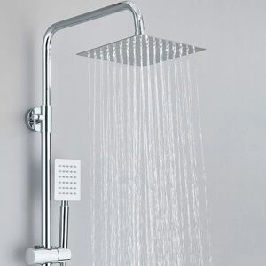 Shower Fixture Wall Mounted Shower Unit Rainfall Shower Head BBathroom Exposed Shower Faucet Set System . Our thermostatic shower system is equipped with a safety lock at 38°C protects you and your family against scalding-hot water High-quality prevents to be discoloured. High-quality brass construction in corrosion and rust-resistant for durability and reliability. The faucet body is made of solid brass, which is corrosion resistant and durable.The shower mode can be easily switched at the push of a button, and the 2modes can be switched at will to suit your shower habits.This bathroom exposed shower system's overall height of the shower fixture: 73-116 cm (28.7- 45.7 inches), comes with a Shower Shelf. The height of the hand shower bracket is also adjustable, offering you a good experience of the shower. Wall-mounted shower fixture is 2 holes installation.This complements most transitional styles, and the appearance is high-end and atmospheric, a good choice for your modern bathroom. Function: Shower System Valve Material: Brass Shower Head Material:Stainless Steel Hand Shower Material: Stainless Steel Shower Head Size: 8 inch Product Height: 730~1160 mm Easy to install Finish: Chrome Functions: 2 Way (Rainfall,Hand Shower) Single switch control. One function at a time. Installation Method: Wall Mounted 59" long stainless steel chrome hand shower hose Water Flow: 1.8 GPM Belfry Bathroom