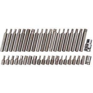 The BlueSpot Mixed Bit Set contains a selection of bits, drop forged from heat treated chrome vanadium steel for increased durability. Complete with handy carrying case for quick and easy storage. Contains:7 x 30mm Hex Bits: 4, 5, 6, 7, 8, 10 and 12.7 x 30mm TORX Bits: TX20, TX25, TX30, TX40, TX45, TX50 and TX55.5 x 30mm Spline Bits: M5, M6, M8, M10 and M12.7 x 75mm Hex Bits: 4, 5, 6, 7, 8, 10 and 12.7 x 75mm TORX Bits: TX20, TX25, TX30, TX40, TX45, TX50 and TX55.5 x 75mm Spline Bits: M5, M6, M8, M10 and M12.1 x 1/2in Adaptor.1 x 3/8in Adaptor.Additional Information:• Head Type: Mixed Set• Pack Qty.: 40