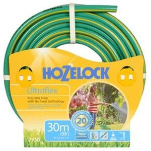 Hozelock 7730 Ultraflex Garden Hose Pipe Watering 30M Ultimate Anti Kink No Twist Hose The Hozelock ULTRAFLEX hose provides the most flexibility from a hose and offers the following: A 20 year guarantee* to provide piece of mind that this hose is built to last. It incorporates anti-kink and no twist technology meaning your hose will never fail to bounce right back into shape and previous tangles will be a thing of the past. 5 layer knitted reinforced structure for durability and desired flexibility The added flexibility allows this hose to easily rewind and manoeuvre for storage, making it a joy to handle in the garden