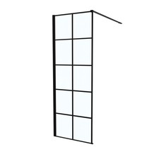 8mm toughened safety glass for superior durability - stronger and safer for peace of mind Height of glass panel: 1900mm to catch more splashes Black grid pattern is printed on to the outside of the glass for easier cleaning Support arm stabilises the glass screen Reversible design to allow left or right hand entry Specification Height: 1900mm Width: 680mm - 700mm Panel Material: 8mm tempered safety glass Frame Material: Aluminium Profile Colour: Black Patern: Black Grid Package Contents Wet Room Panel Support Bar