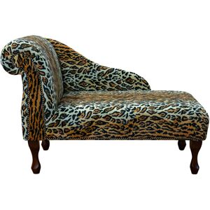 Handmade from start to finish in the North-East of England. The perfect funky option for any room, this small-sized Chaise Longue features a Leopard print fabric. The fabric features a super-soft faux fur texture with a wildlife-inspired leopard pattern. This chaise is finished with hand-studded detail around the arm and along the base. Beaumont