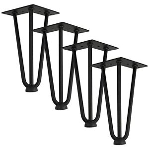 Material: Made of sturdy solid steel and cold rolled steel, the legs are more stable and durable, rust-resistant powder coating, it supports up to 440 pounds. The legs are smooth and comfortable to touch. Additional Floor Protectors: Use the rubber floor protector to protect your floors from damage or as additional stabilization for wobbly chairs or tables. Pre-Drilled Mounting Bracket: The mounting bracket is pre-drilled with 4 holes for quick installation. The mounting plate measures 110mm length x 30mm width x 4mm thickness. Widely Used: Hairpin legs are suitable for desks, benches, sofas, coffee tables, TV cabinets and nightstands. Package Included: 4 x hairpin legs, 4 x rubber floor protectors, 20 x screws.