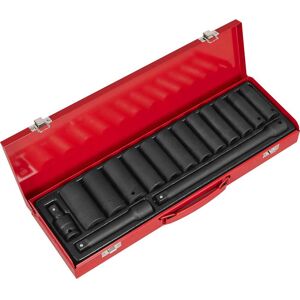 Tool Tray with Impact Socket and Adaptor Set. Suitable for selected Superline PRO® and Premier Tool Chests. Features & Benefits: • Contents: 1/2"Sq Drive Alloy Wheel Impact Sockets; 17, 19, 21, 22mm, 1/2"Sq Drive Locking Wheel Nut Sockets; 18.5, 21.5, 26mm, 1/2"Sq Drive Impact Extensions; 75, 150, 250mm, 1/2"Sq Drive Universal Joint, Impact Adaptors; 1/2"(F) x 3/8"(M), 1/2"(F) x 3/4"(M), 3/4"(F) x 1/2"(M), 1"(F) x 3/4"(M). • Tray Size (W x D x H): 176.5 x 397 x 55mm. • Lifetime guarantee*. • Model No. TBT25 Specifications: Model No TBT25 Brand: Premier Contents: 1/2"Sq Drive Alloy Wheel Impact Sockets; 17, 19, 21, 22mm, 1/2"Sq Drive Locking Wheel Nut Sockets; 18.5, 21.5, 26mm, 1/2"Sq Drive Impact Extensions; 75, 150, 250mm, 1/2"Sq Drive Universal Joint, Impact Adaptors; 1/2"(F) x 3/8"(M), 1/2"(F) x 3/4"(M), 3/4"(F) x 1/2"(M), 1"(F) x 3/4"(M) Nett Weight: 3.84kg Tray Size (W x D x H): 176.5 x 397 x 55mm