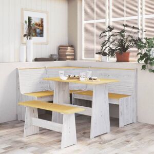 This wooden corner bench is an ideal choice for you to take a nap or have a chat with your family or friends. Made of solid pinewood, the corner bench stands out with its durability. You can place the bench seat in the living room or dining room enjoy great books and a cup of coffee. The backrest contributes to your seating comfort. Additionally, the long bench can be assembled both left-sided and right-sided to fit different layouts. Good to know:The delivery includes only the corner bench. Colour: White Material: Solid pinewood Dimensions: 151 x 118.5 x 85 cm (L x W x H) With backrest Long bench can be assembled both left-sided and right-sided Range name: REINE Assembly required: Yes